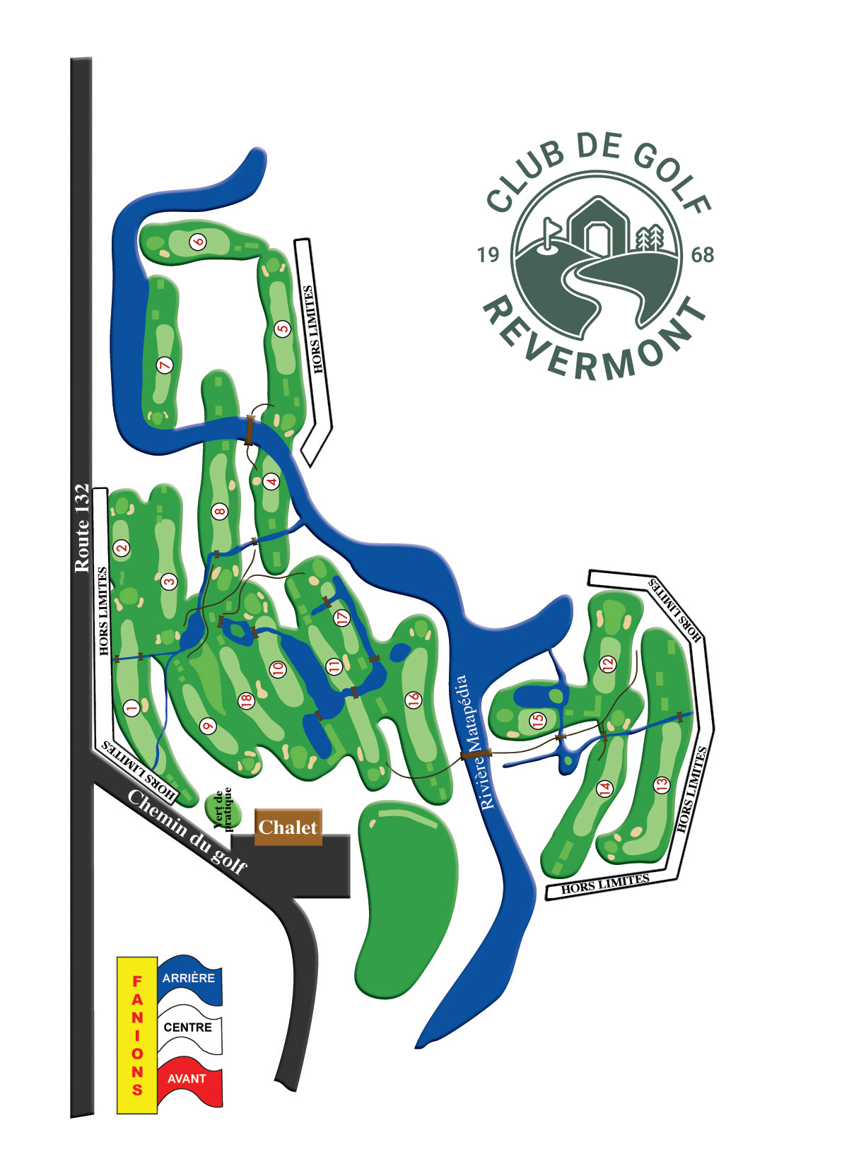 Le Club de golf Revermont offre aux golfeurs une expérience unique sur un parcours au panorama à couper le souffle bordé par la majestueuse rivière Matapédia. Situé au cœur de la Vallée de la Matapédia, à moins de trois kilomètres du centre-ville d’Amqui et à la croisée du Bas-Saint-Laurent et de la Gaspésie, venez vivre des moments de golf inoubliables dans un décor naturel exceptionnel!